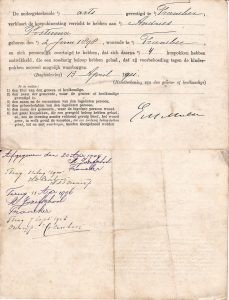 1806 Greetje Aukes en Klaaske Aukes Hommema, minderjarige vrijsters gesterkt met hun moeder Liesbeth Harmens weduwe van wijlenAuke Sjieuwkes kopen op 07-02-1806 een huis en erf cum annexis, staande nabij het roodbruggetje binnen Franeker, bij de verkoperse bewoond, aldus in koop bekomen van Sietske Hilles, weduwe van Pieter Klases Andringa voor de somma van 700 cg te betalen in alhier gangbaar grof zilverengeld in een termijn bij het tekenen der koopbrief.