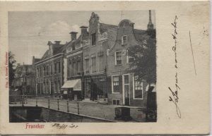 1864 Op maandag 5 December 1864 in het logement van Johannes Pol te Franeker wordt bij openbare veiling te koop aangeboden door door Poppe IJsselmuiden timmerman en Petrus IJsselmuiden winkelier beide wonende te Franeker een huis met erf staande en gelegen in de wijk TO 135 Kad. Nr. Sectie A 624, begerechtigd met het gebruik en onderhoud van twee massale stegen met de naastelegers zuid en noord, belast met 80 centen jaarlijkse grondpacht aan het Claar Kamster weeshuis, vrij te aanvaarden op 12 mei 1864, het perceel wordt verkocht zo goed en kwaad het is met lusten, lasten, servituten gerechtig en mandeligheden en en rijks en stedelijke belastingen en alle zichtbare en onzichtbare gebreken, het eerste bod van fl. 1920,- wordt gedaan door Maria Gorter huisvrouw van Augustinus IJsselmuiden welk bod niet verhoogt wordt, te betalen in een termijn 8 dagen na de finale toewijzing.