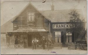1921 Op 01-09-1921 koopt Harmen Harkes Terpstra koopman wonende te Franeker een woning met bleekje staande op de hoek van de vossegatsteeg en de zuiderkade nr. 10, Kad. Nr. Sectie A 1953, gekocht en verkregen van Aukje Terpstra weduwe van wijlen Harmen de Vries en erfgenamen voor de somma van fl. 1500,- , de koper is verplicht het perceel tegen brandschade te verzekeren bij een solide binnenlandsche maatschappij te brandschade, de heer Dirk Terpstra veehouder wonende onder Welsrijp verklaard zich borg te stellen voor goede en volledige betaling der koopsom.