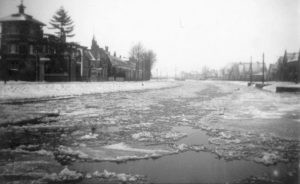 Algemeen stads armenhuis, nu Muziekschool van Ritmyk. Op de achtergrond 1 van de gashouders van de gasfabriek.