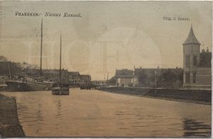 Salverderweg Oudere vrouw voert eenden, In de verte de Paardebrug. Hommema 6x6 negatief
