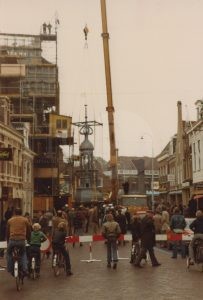 F2 feesten: 750 jaar stadsrechten voor Franeker. Feestelijk versierde Voorstraat. Een stond een tent op het Sjûkelân tijdens de zakenbeurs.
