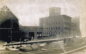 Het laden van bieten in een binnenvaartschip aan de Zuiderkade. Aan de overkant de FLC.