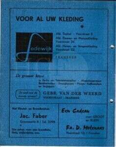 It Fleurige Flittergat: 1969 6de jaargang nr. 4: Reklame; Lodewijk Textiel en kleding Voorstraat 5,23 en 34, Gebr. Van der Weert Voorstraat 25, Koffiebar De Tu...