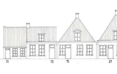 Hocquart 10. cafe "De eerste aanleg" (Op 31-12-1991 afgebrand) genomen vanaf de Sexbierrumer brug
