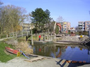 De stadsboerderij op het Oud Kaatsveld. Lange tijd stond er een eenden huisje in de stadsgracht op deze plaats