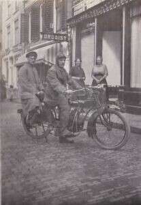 familie Kortrijk op het voorplein van de Rooms Katholieke kerk aan de Godsacker 13. rechts is de Patorie. Johannes (Johan) Kortrijk in militaire dienst. Recht...
