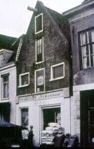 Het pand van drankenhandel De Windt. Links het Rooms Katholiek Verenigingsgebouw en rechts hotel "De Doelen". het pand is afgebroken in de zomer van 1983 1983