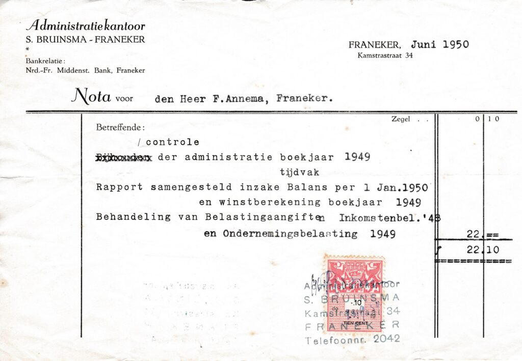 Beschrijving: | Administratiekantoor Seerp Bruinsma Kamstrastraat 34. Nota voor verschillende de administatieve werkzaamheden |