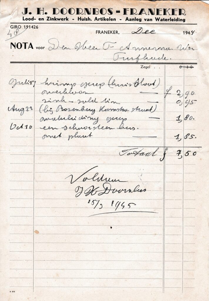 Beschrijving: | Jan Hendrik Doornbos, Koperslager / Loodgieter. Nota voor o.a Waterleiding en schoorsteenbuis. |