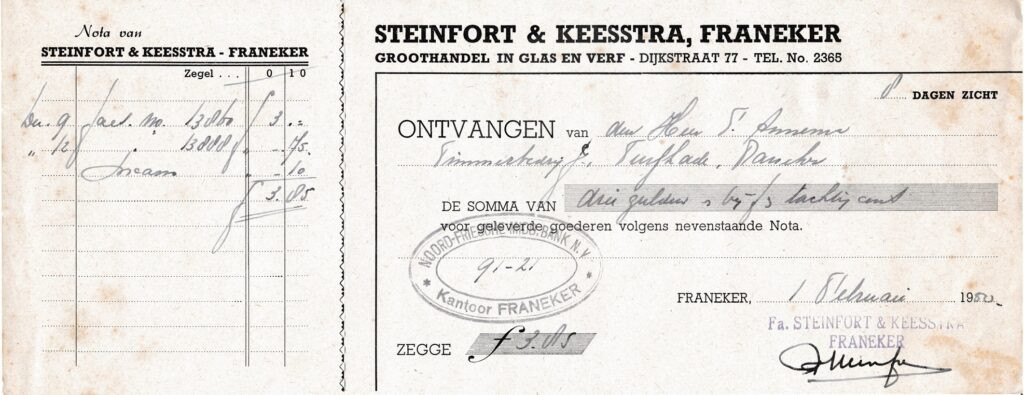 Beschrijving: | Steinfort en Keesstra Dijkstraat 77 Nota en kwitantie |