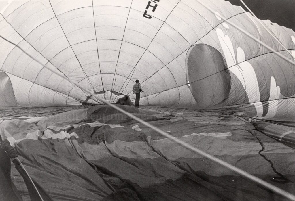 | Beschrijving: | Het opblazen van een luchtballon. We staan binnenin de ballon. |