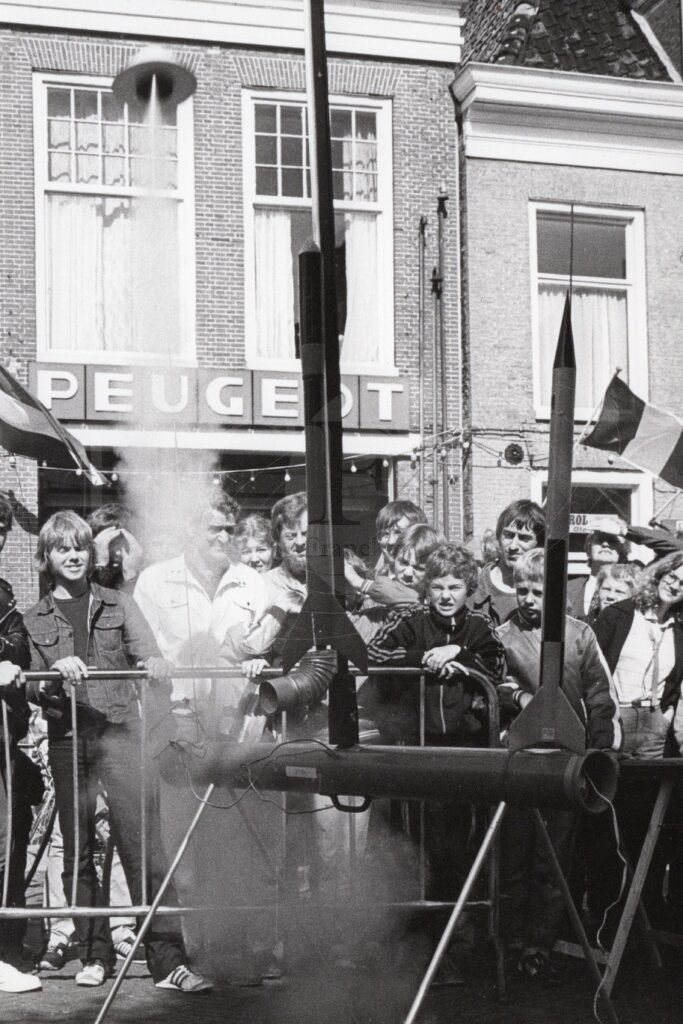 Beschrijving:Feest. Raketten worden gelanceerd
