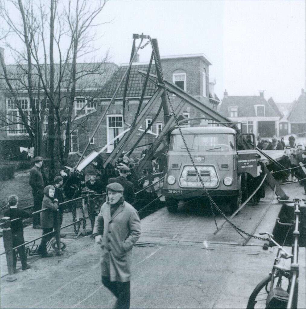 | Beschrijving: | Ongeluk Noorderpoort: Noorderpoort of de Donjumerpoort nadat een vrachtauto in de nacht van 9 september1966 de brug onherstelbaar had beschadigd. De chauffeur was gevlucht. Het was niet het eerste ongeluk bij de sta in de weg brug. Hier worden de resten afgebroken om een nieuwe brug te kunnen bouwen |