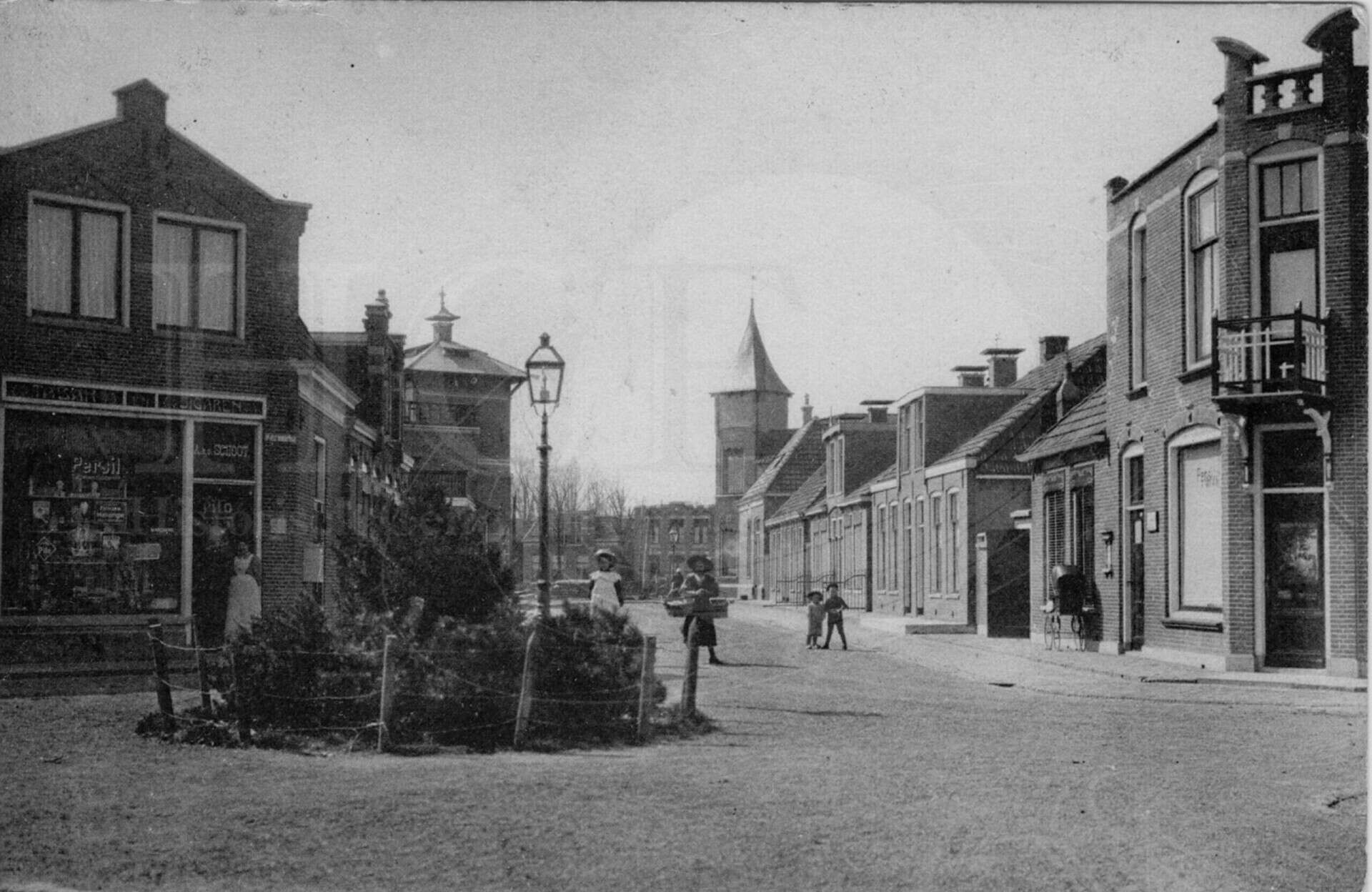 | Beschrijving: | We kijken hier naar de Van Ghemmenichstraat richting kanaal. Het huis links op de hoek is Dr. Jelle Banfastraat 19, de winkle van Albert Ebels van der Schoot. De weg is nog onverhard. |
