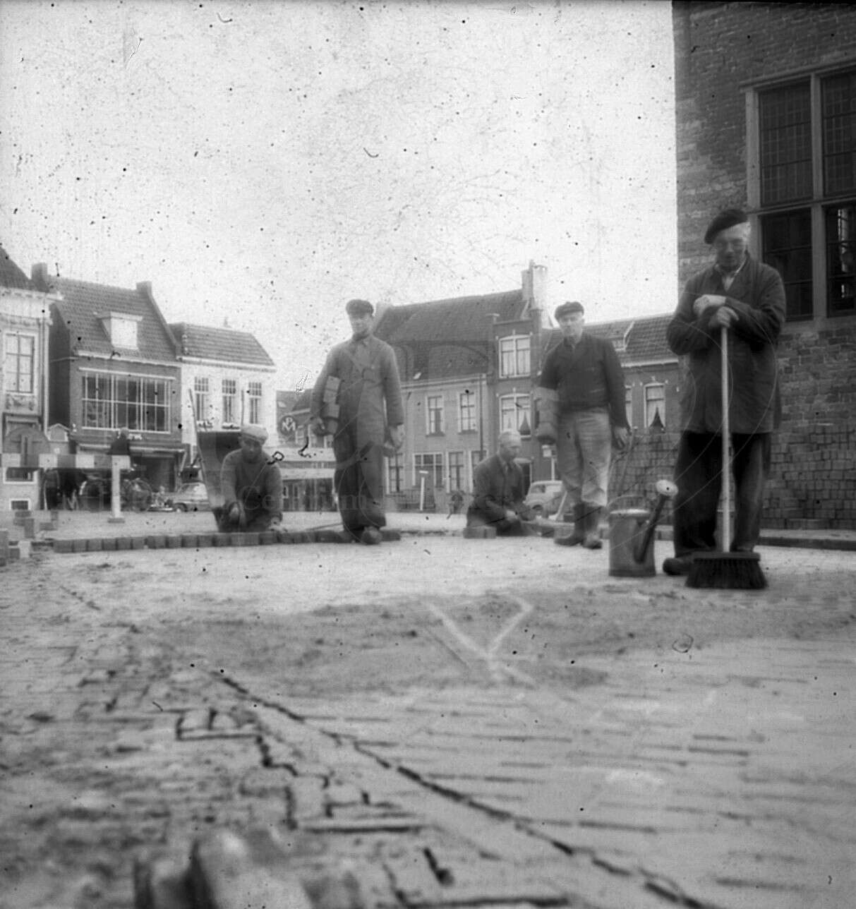 | Beschrijving: | Stratenmakers op de Breedeplaats. |