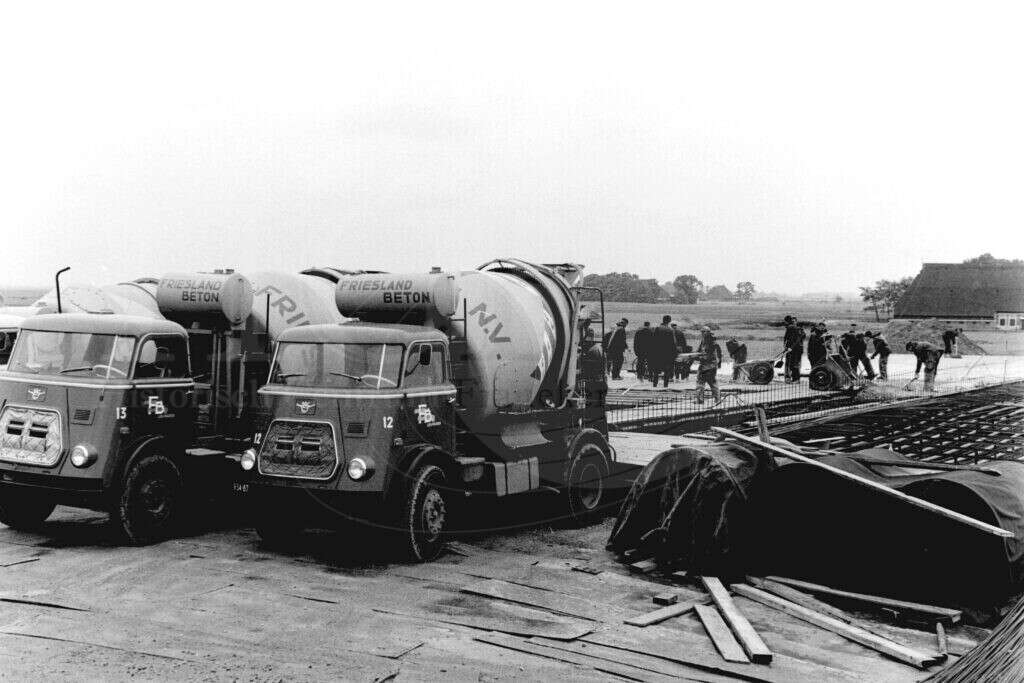 | Beschrijving: | De bouw van het viaduct over de Dongjumervaart in de Burgemeester J. Dijkstraweg. Hier gaat de Loréstraat over in de Prins Bernhardlaan. |