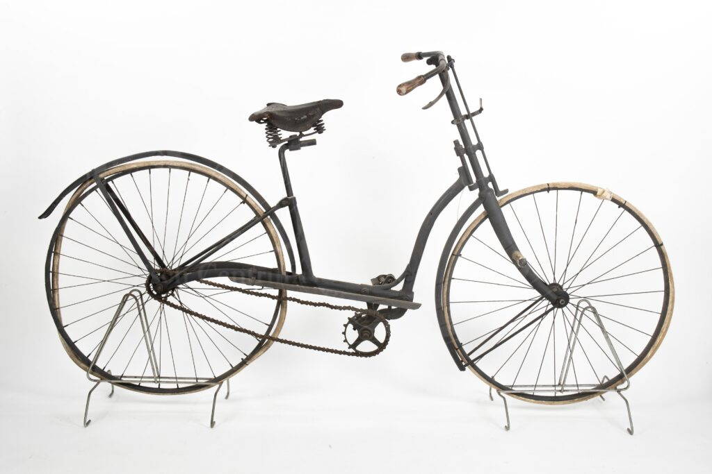| Beschrijving: | "Tijdvak 1880-1890: veiligheidswieler en damesfiets (ca 1890) Fiets met kettingaandrijving ""Rudge Cripper Style"" Representeert: de ontwikkeling van een fiets (safety), speciaal voor dames (lagere instap) " |
