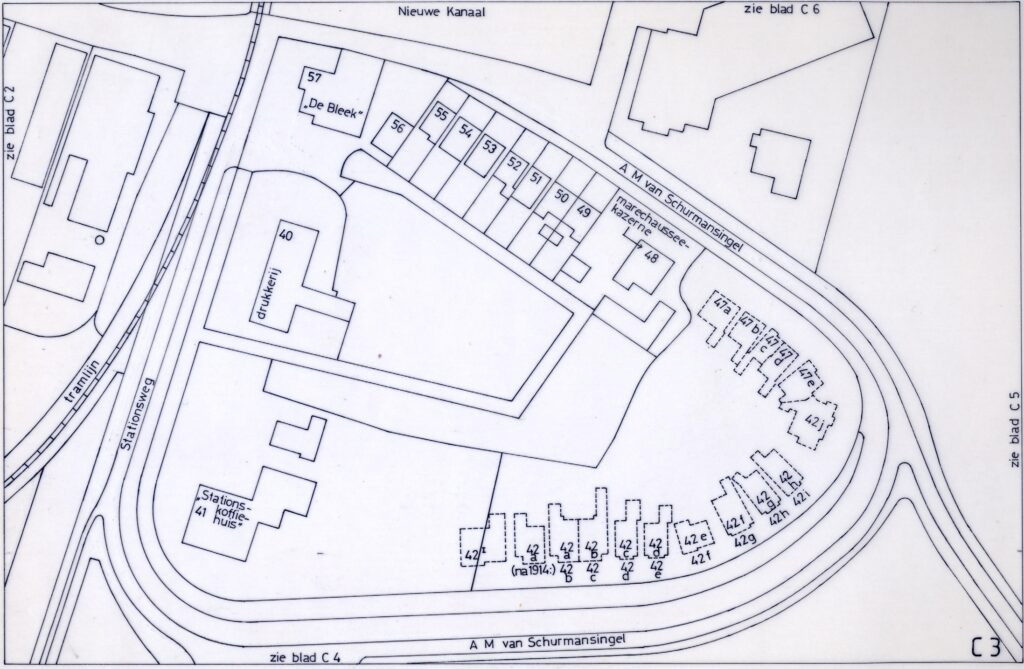 | Beschrijving: | De eerste huizen van de Anna Maria van Schurmansingel tot de Marechausseekazerne zijn al gebouwd. |