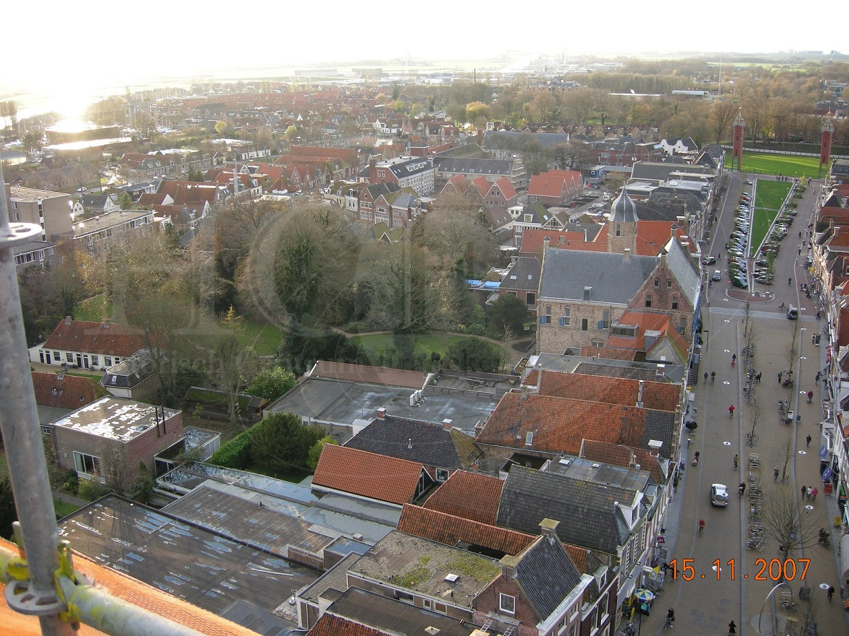 | Beschrijving: | Franeker in vogelvlucht. Uitzicht vanaf de Martinikerk richting Voorstraat en PZ |