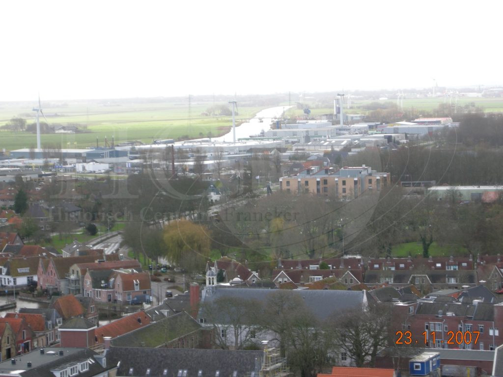 | Beschrijving: | Franeker in vogelvlucht. Uitzicht vanaf de Martinikerk richting Gemeentehuis en Westelijk Industrieterrein |
