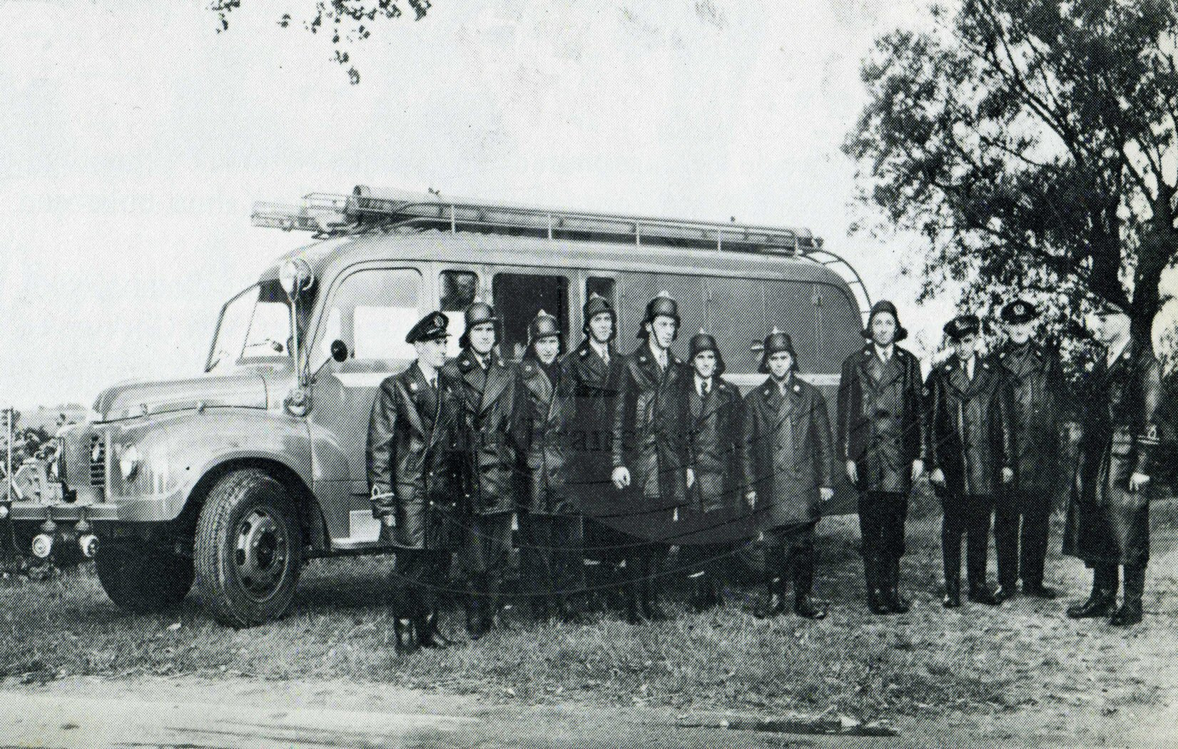 | Beschrijving: | Leden van de vrijwillge brandweer van Franeker poseren voor de brandspuit. V.l.n.r; Harry Adema, Joop lavén, Sjonny Novak, Herman van der Meer, Dirk Postma, Frans Bikowski, Stanny ( Stanislaw ) Bida, Theinus van der Molen, Rients Bouma, Hyltje de Boer, en opperbrandmeester Sijmen Wynia. |