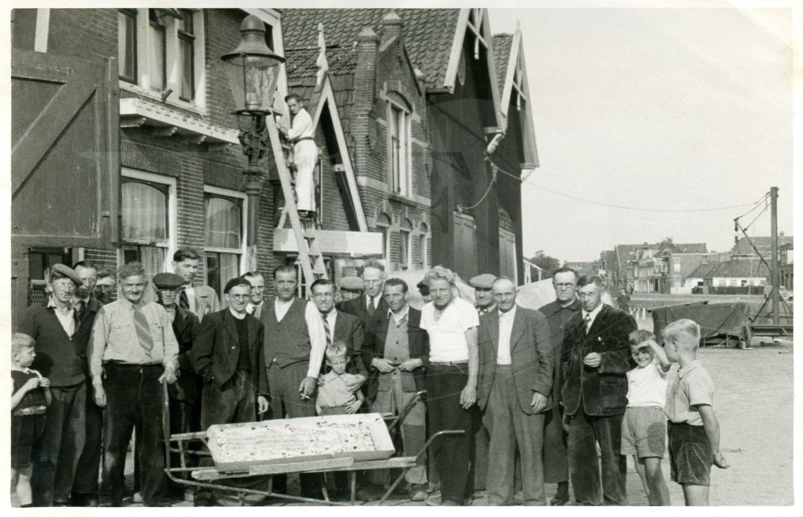 Beschrijving: | Personeel van de Groenteveilig bij het 25 jarig bestaan aan de Prins Hendrikkade. Met enkele bekende namen. Hedzer Pekel, Koningveld. (zie lees meer ) [Lees meer] |