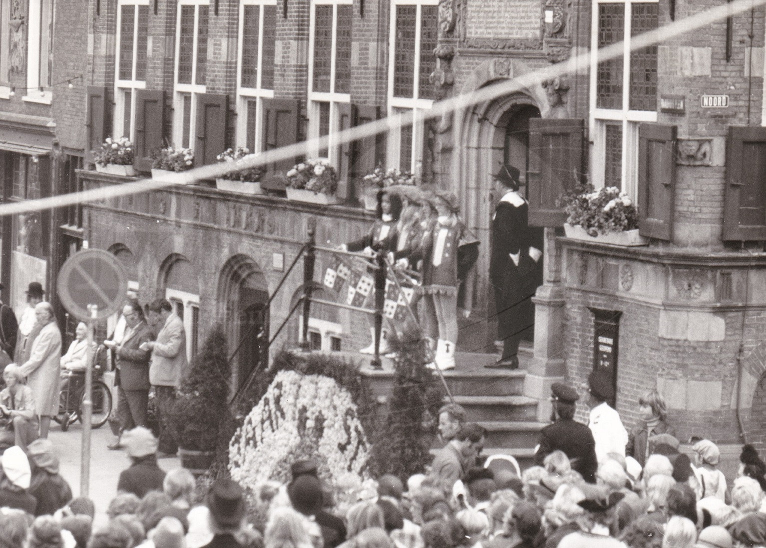 Beschrijving: | Feest. 775 jaar stad Franeker, de menigte wacht op De Profesoren het die uit Raadhuis gaan komen. . Ze gaan in optocht naar het Sjûkelân of Sternse Slotland voor de opening van de F4 Feesten tijdens de Agrarisch dagen |