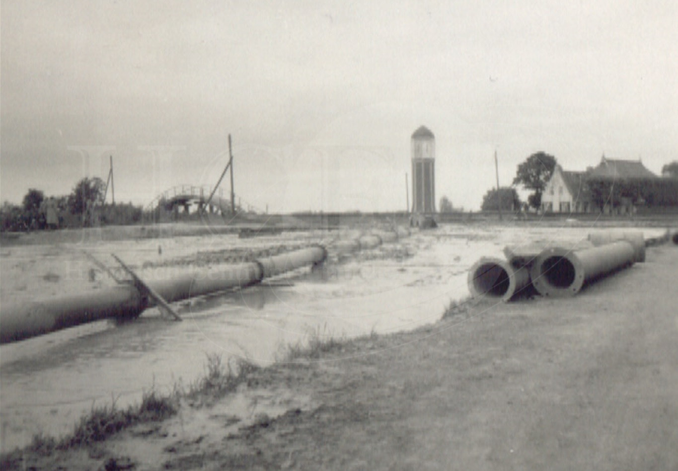 Beschrijving: | Dempen d.m.v opspuiten van het stuk kanaal tussen Salverdervaart en Stationsbrug. Rechts De Boerderij van Hettinga. Links de Paardenbrug en in het midden de Watertoren. |