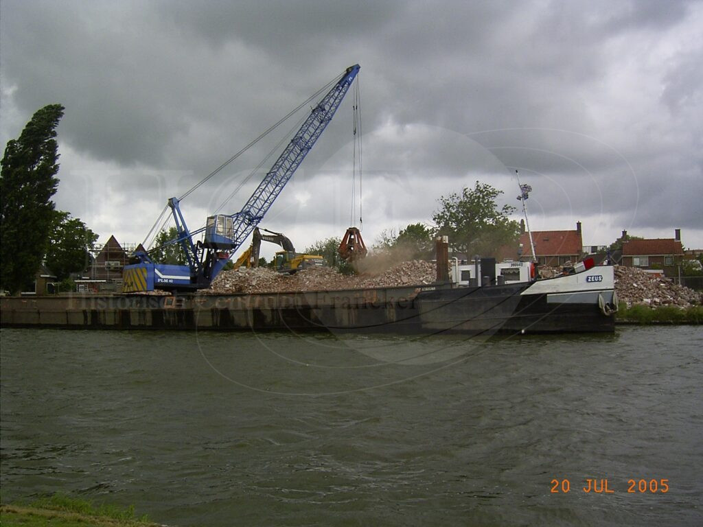 | Beschrijving: | Thorbeckestraat. Afvoer van het puin via het water van de Huishoudschoos. Er werden niewe appartementen gebouwd |