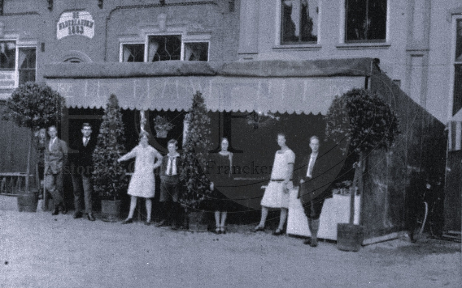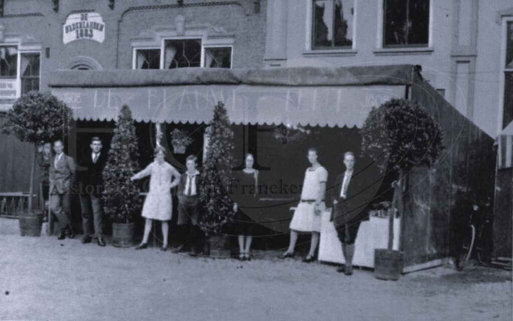 | Beschrijving: | Stand 'De Blauwe Tent' van afd. J.O.G.B met 2de van rechts is Janke van der Zee, dochter van schilder Heere Jacobs van der Zee. |