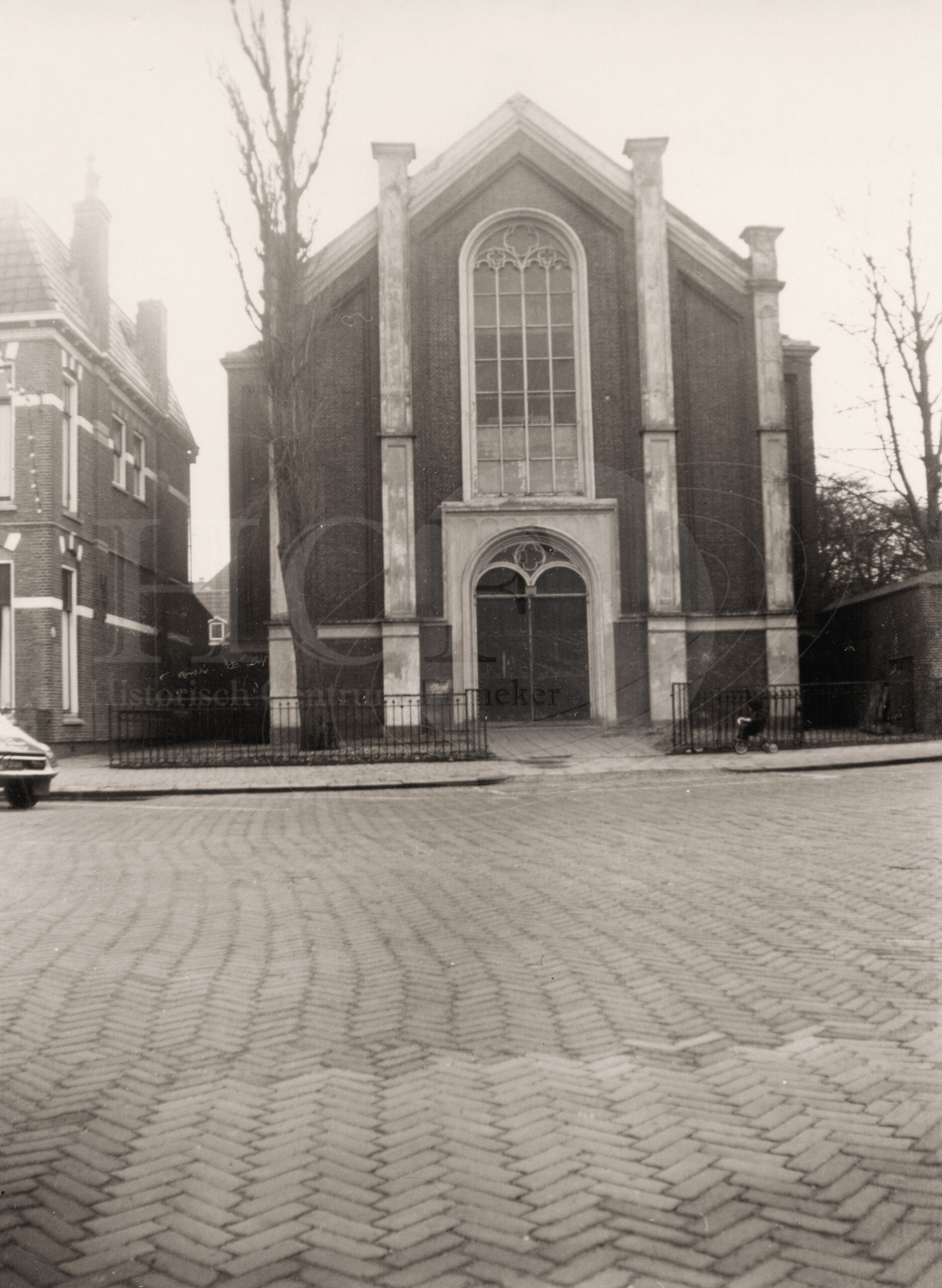 | Beschrijving: | De Doopsgezinde kerk. Op 7 juni 1959 werdt de laatste dienst in de Doopsgezinde kerk aan de Voorstraat 73 gehouden. Notaris Bijlsma hield een toespraak. Kerk is in 1978 gesloopt. |
