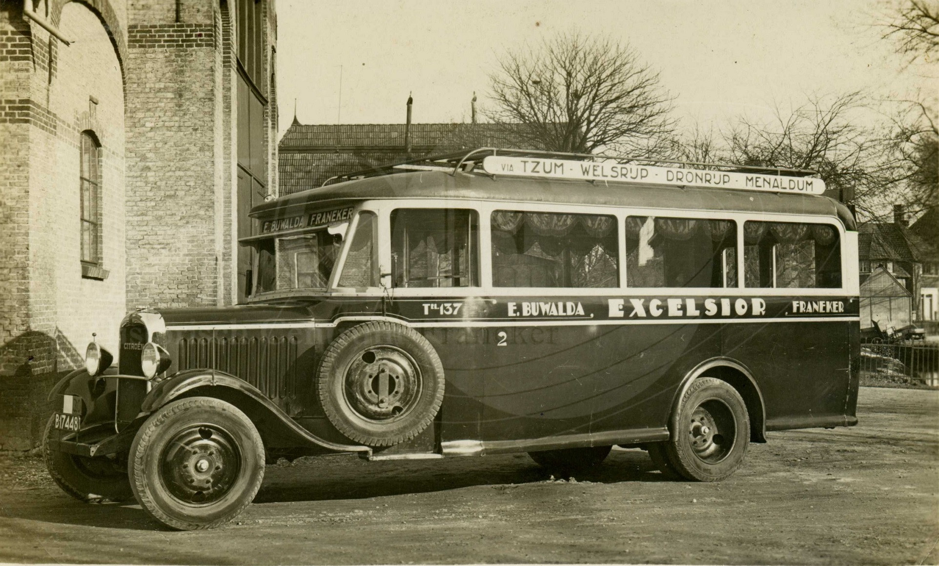 | Beschrijving: | Een v/d autobussen die werd geëxploiteerd door Egbert Buwalda (geb. in 1886). Hij onderhield hiermee een dienst tussen Franeker - Tzum - Welsrijp - Dronrijp - Menaldum en weer retour naar Franeker. Buwalda mankeerde iets aan zijn voet, hij liep niet goed. Hij woonde a/d Harlingerweg en is ruim 100 jaar geworden. In 1943 was hij eigenaar v/e Rijwielhandel in het pand Dijkstraat 40. Hij had ook een Taxibedrijf vanuit een garage a/d A.M. van Schurmansingel 1, naast Hotel de Bleek. "Het was in de tijd van de wilde busdiensten op Amsterdam. Egbert Buwals in een intervieuwe: "We openden een zaak met 5 autobussen van de merken Morris, Chevrolet, Ford, Citroën en Fargo. Als personeel hadden we in dienst Michiel Andringa, Siebren Miedema, Nelis Langerak, Piet Rijpstra, Gerrit Sluis, Paul de Leeuw, Siis Bouma". |
