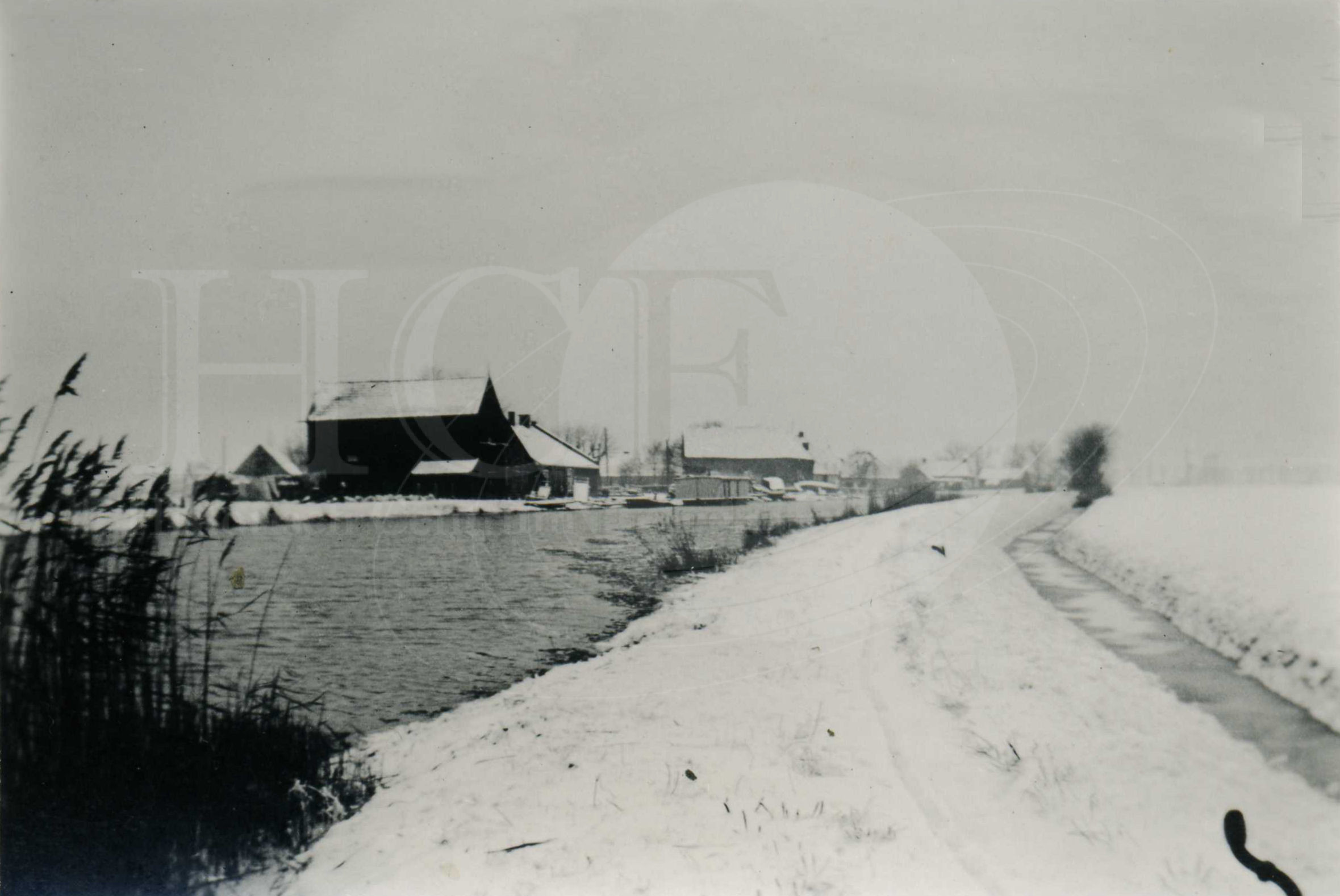 | Beschrijving: | De schuur achter het molen huis. De molen deed dienst al poldermolen, maar werd overbodig toen het gemaal bij Tzum in gebruik werd genomen. De schuur is in de jaren 70 afgebroken door Piet Schat, die er een dieselmoteren bedrijf had. Rechts de scheepshelling |