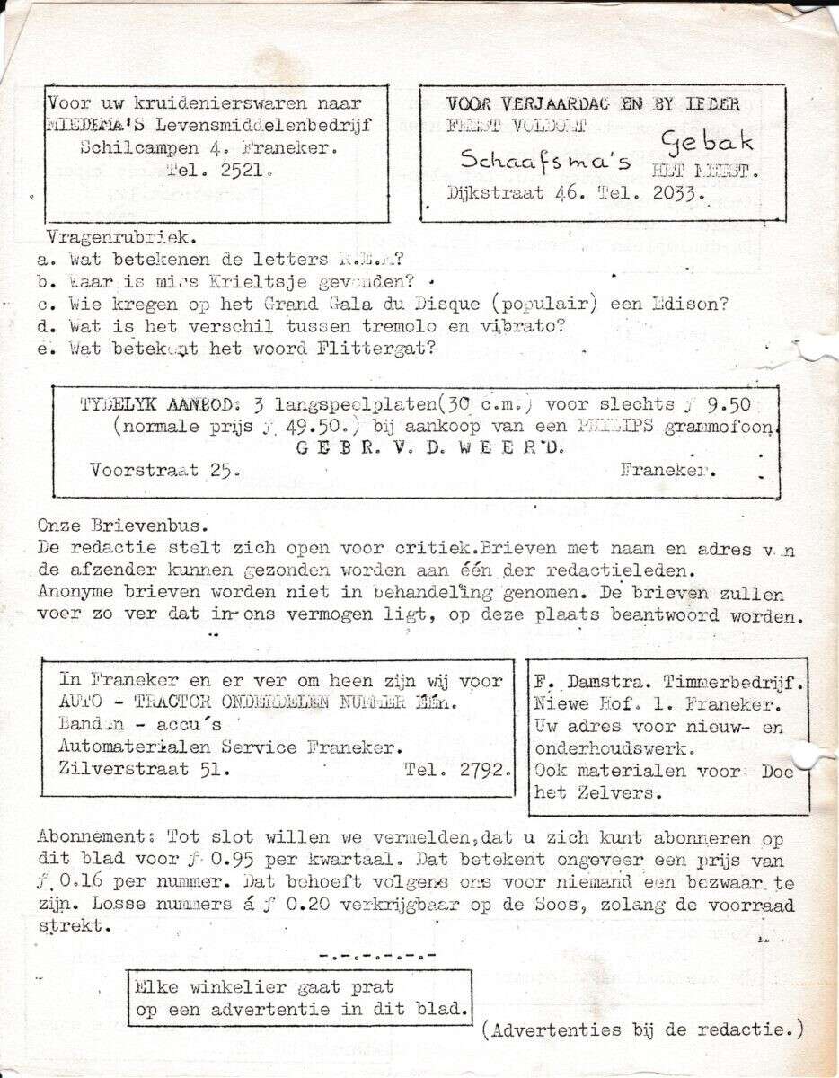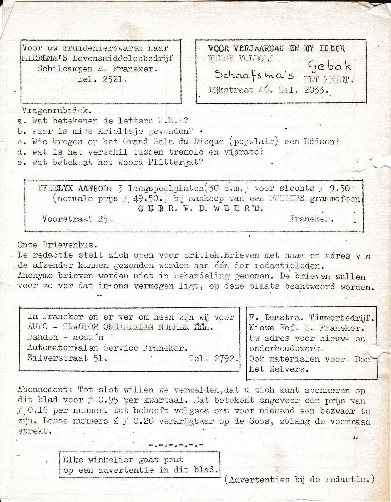 Beschrijving:It Fleurige Filttergat: 1964 1ste jaargang nr. 1: Vragenrubriek, De brievenbus, aboneren, Reklame: Miedema Schilcampen 4, Bakker Schaafsma Dijkstraat 46, Automatrialen Service Franeker Zilverstraat 51, Timmerbedrijf F.Damstra Nieuwe Hof 1.