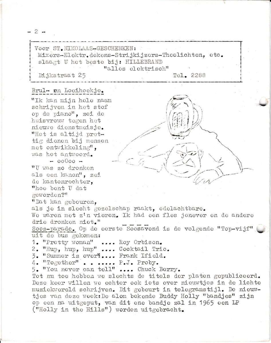 Beschrijving:It Fleurige Filttergat: 1964 1ste jaargang nr. 3: Brul en Loeihoekje, Muziekrubriek de Soos-Parade, Reklame: Hillebrand "Alles Electrisch" Dijkstraat 25