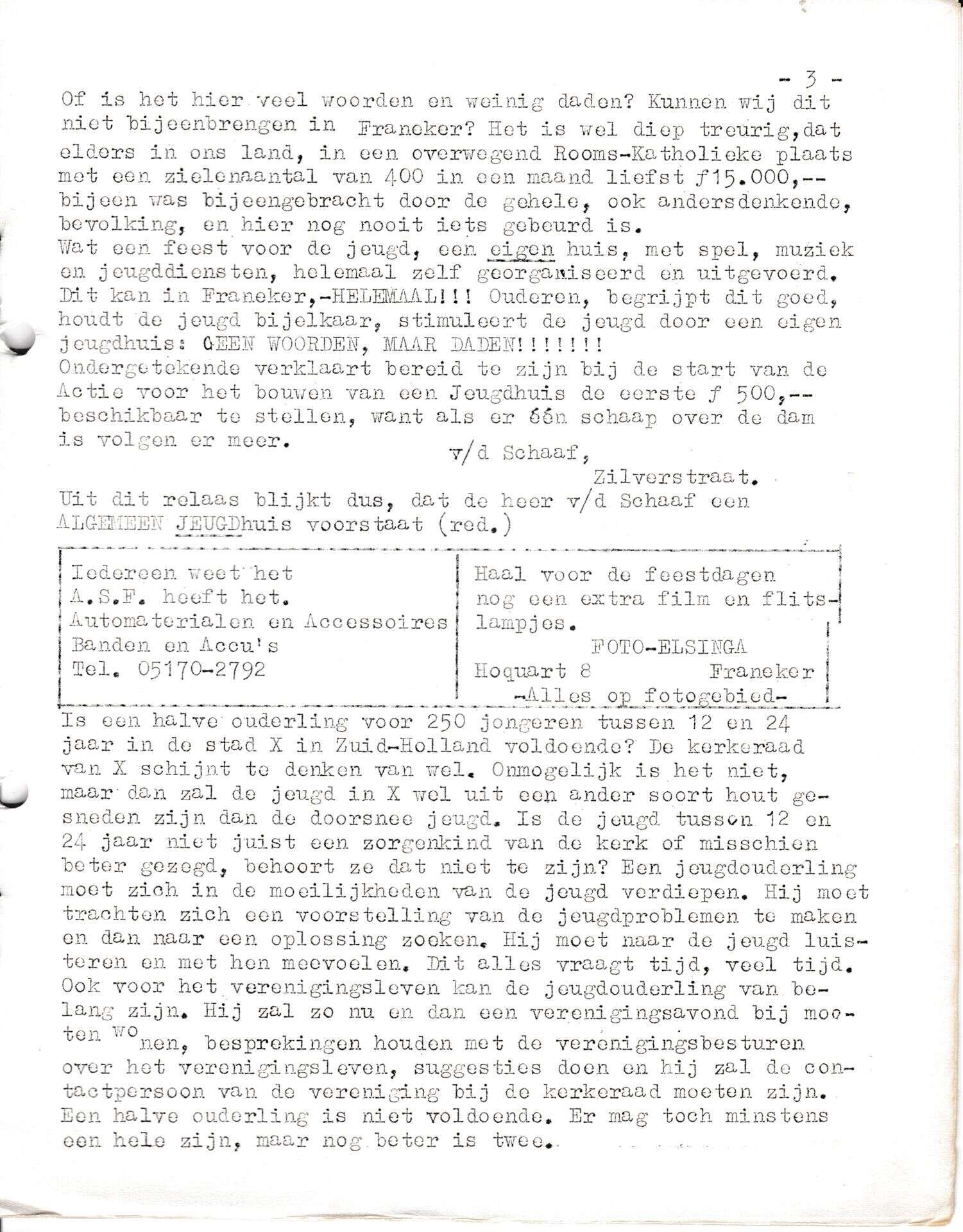 | Beschrijving: | It Fleurige Flittergat: 1ste jaargang nr. 6: vervolg Brievenbus, Ouderling, Reklame: Foto Elsinga, Hocquart 8, Automatrialen Service Franeker Zilverstraat 51. |