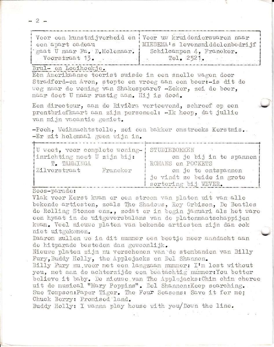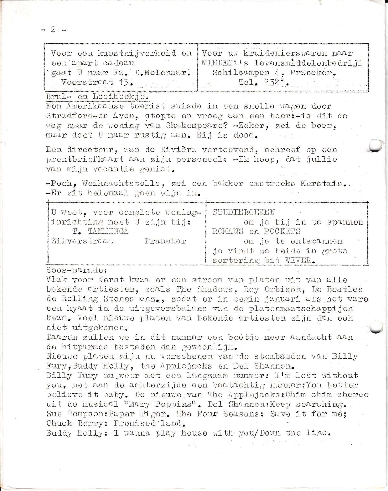 | Beschrijving: | It Fleurige Filttergat: 1ste jaargang nr. 8: Brul en Loeihoekje, Soosparade. Reklame: Fa.D.Molenaar Voorstaat 13, Kruidenier Miedema Schilcampen 4, Woning Inrichting Tamminga Zilverstraat 3, Boekhandel Wever Raadhuisplein 6 |
