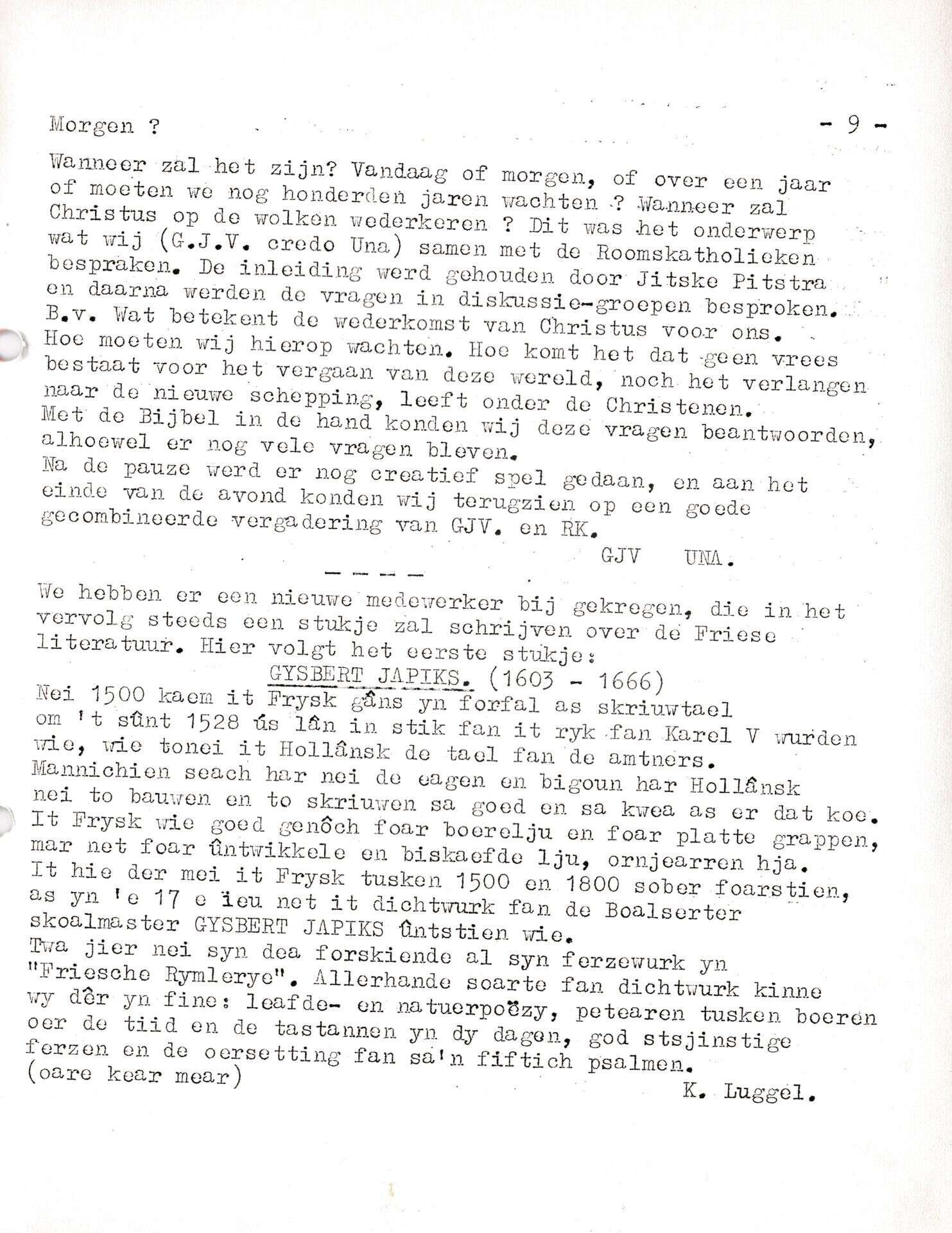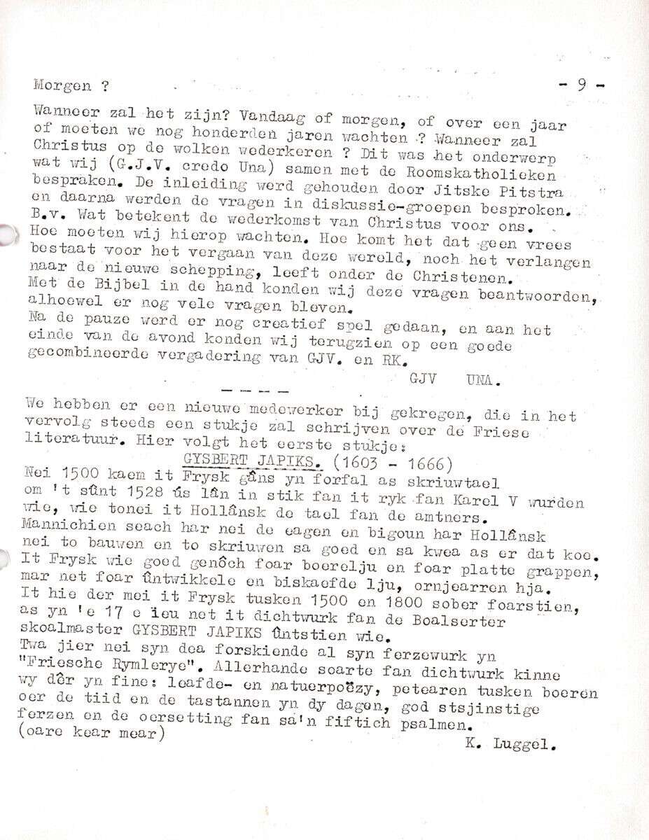 | Beschrijving: | It Fleurige Flittergat: 1ste jaargang nr. 12: C.J.V: Literatuur: Gysberts Japiks |