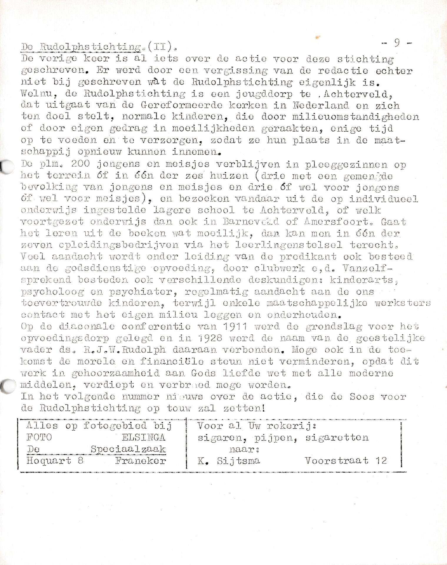 | Beschrijving: | It Fleurige Flittergat: 1ste jaargang nr. 13: Rudolphstichting II, Reklame: Sigaren Magazijn K.Sijtsma Voorstraat 12, Foto Elsinga Hocquart 8,. |