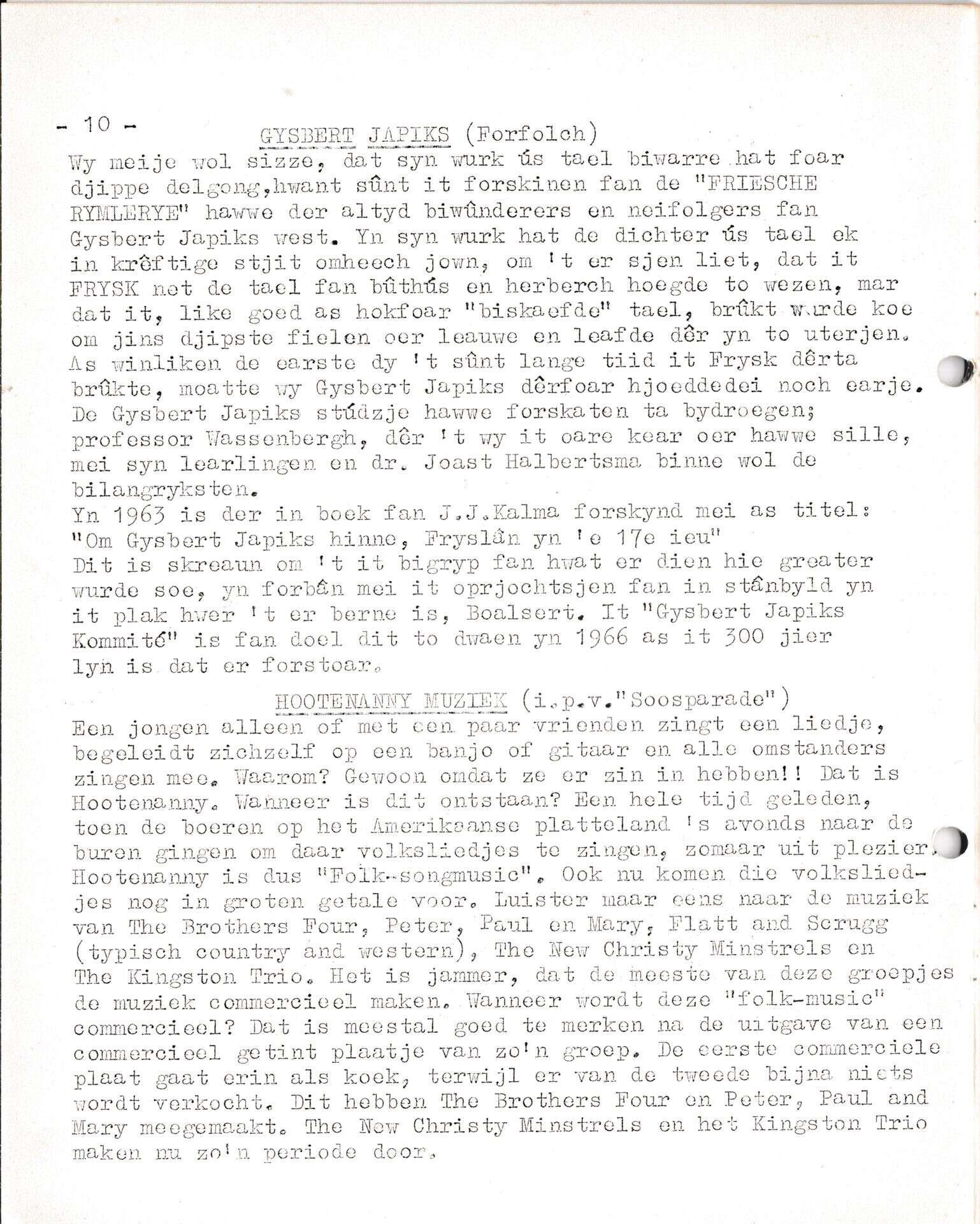 | Beschrijving: | It Fleurige Flittergat: 1ste jaargang nr. 13: Literatuur: Gysberts Japiks, Hootenanny muziek. |