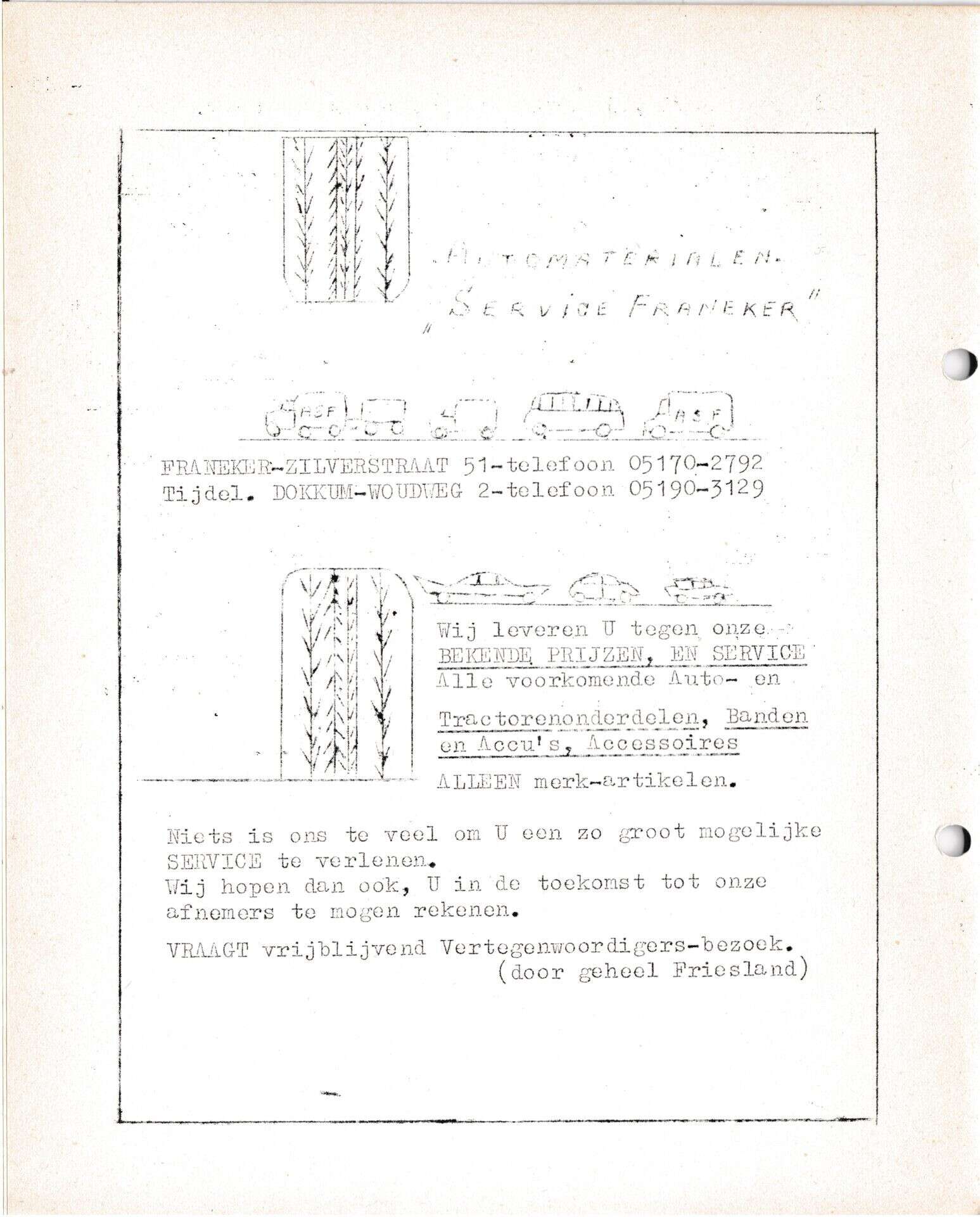 | Beschrijving: | It Fleurige Flittergat: 1ste jaargang nr. 14: Achterzijde: Reklame: Automatrialen Service Franeker Zilverstraat 51 |