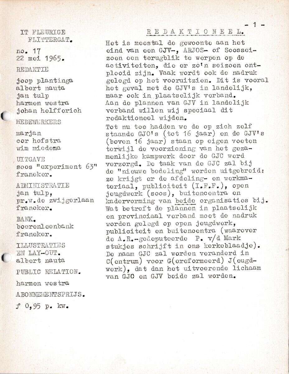 Beschrijving:It Fleurige Flittergat: 1ste jaargang nr. 17: Redactie