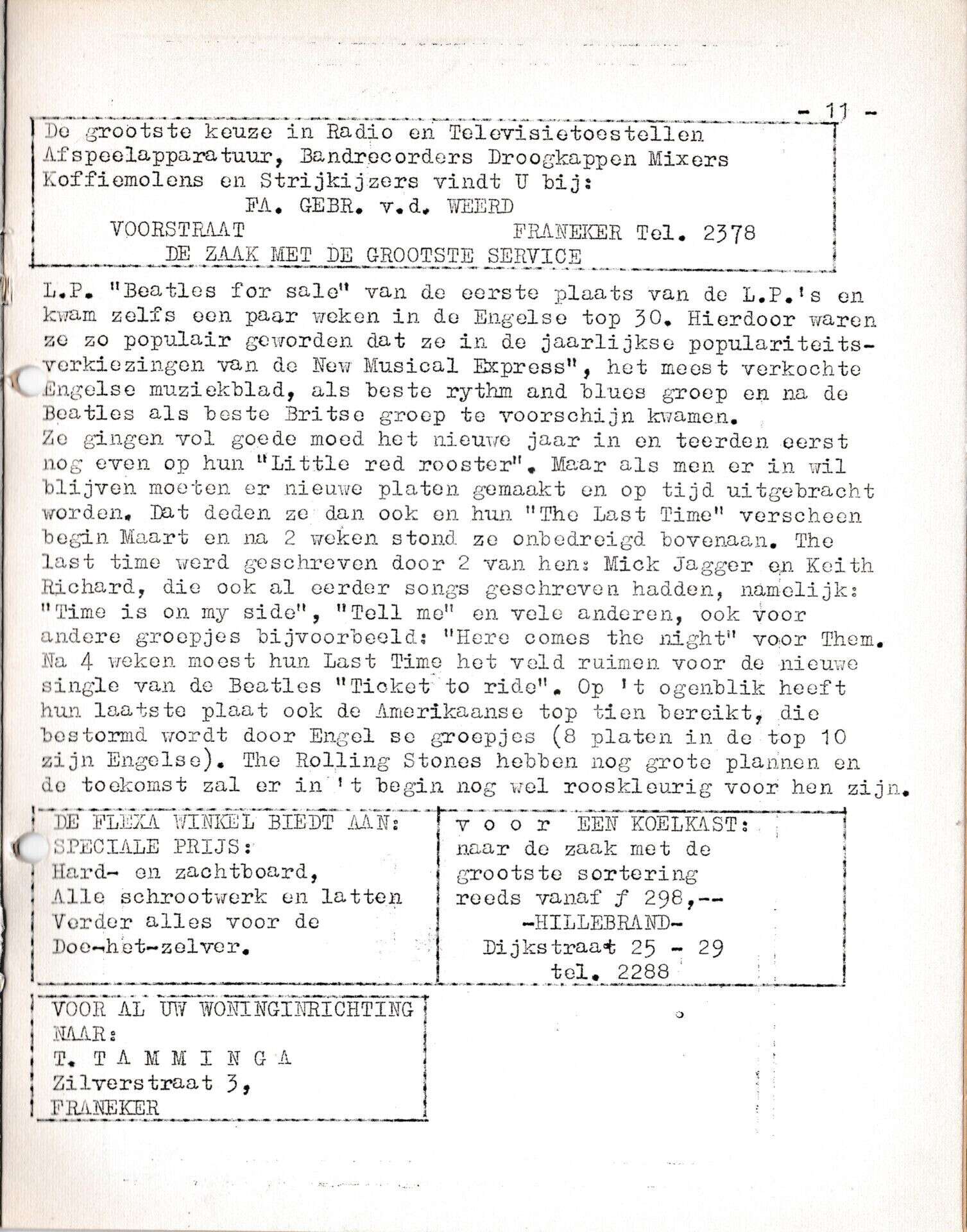 | Beschrijving: | It Fleurige Flittergat: 1ste jaargang nr. 17: vervolg Soosparade. Reklame: Hillebrand "Alles Electrisch" Dijkstraat 25, Gebr. Van der Weert Voorstraat 25, Flexa Noord 38, Woning Inrichting Tamminga Zilverstraat 3 |