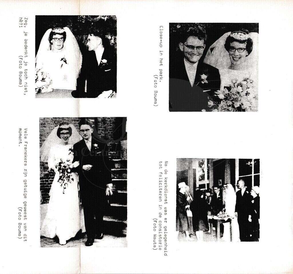 | Beschrijving: | It Fleurige Flittergat: 1ste jaargang nr. Extra editie: Huwelijk jeugdominee Diermanse, foto's |