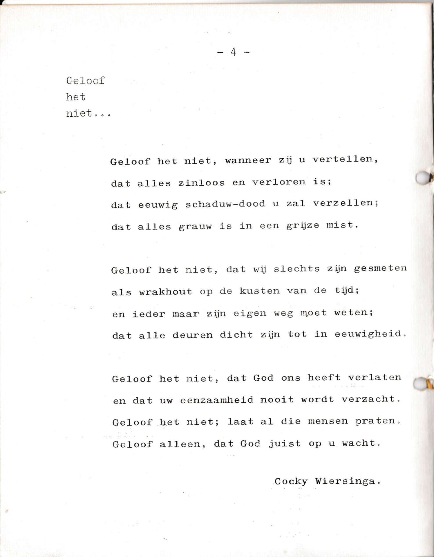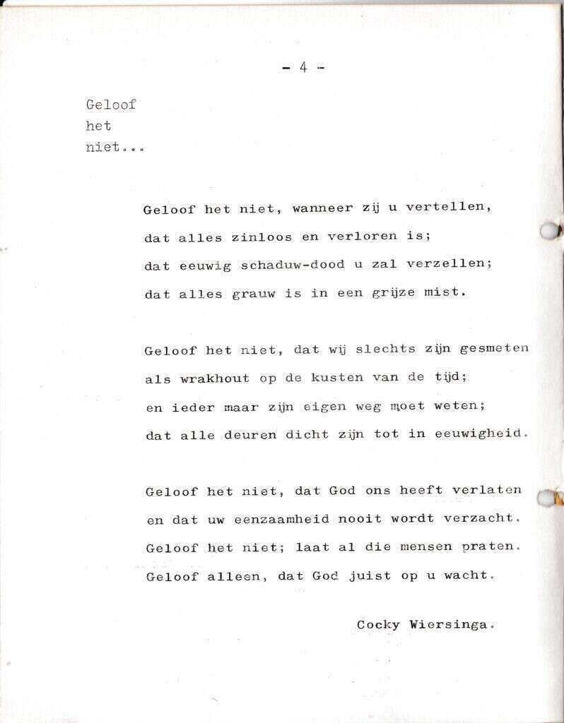 Beschrijving:It Fleurige Flittergat: 2de jaargang nr. 1: Gedicht "Geloof het niet…" van Cocky Wiersinga