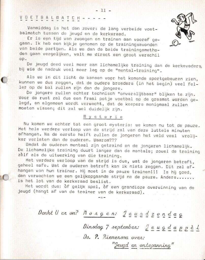 Beschrijving:It Fleurige Flittergat: 2de jaargang nr. 1: Voetbalmatch tussen jeugdbestuur en Kerkeraad