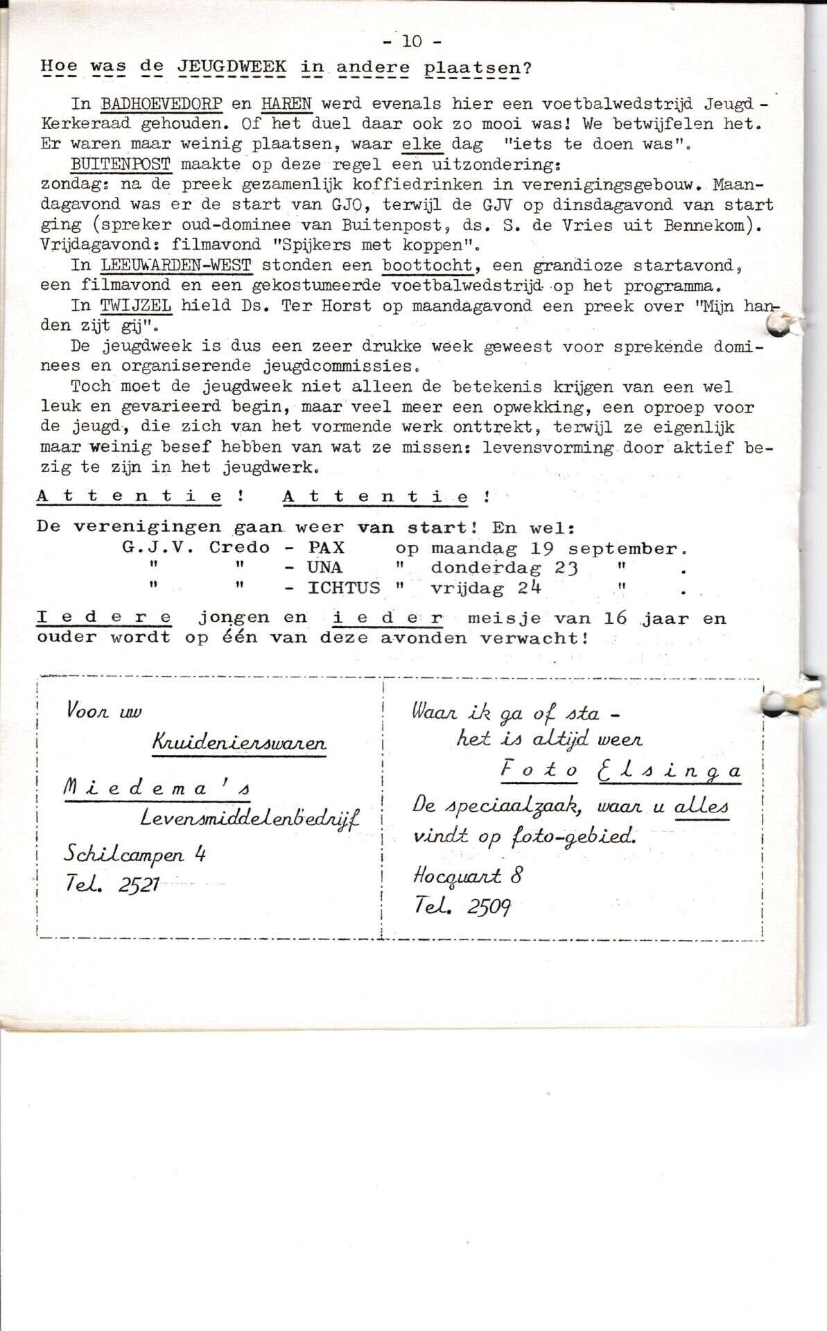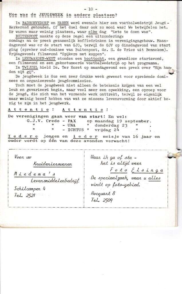 | Beschrijving: | It Fleurige Flittergat: 2de jaargang nr. 2: Jeugdweek, Reklame: Miedema Kruidenier Schilcampen 4, Foto Elsinga Hocquart 8. |