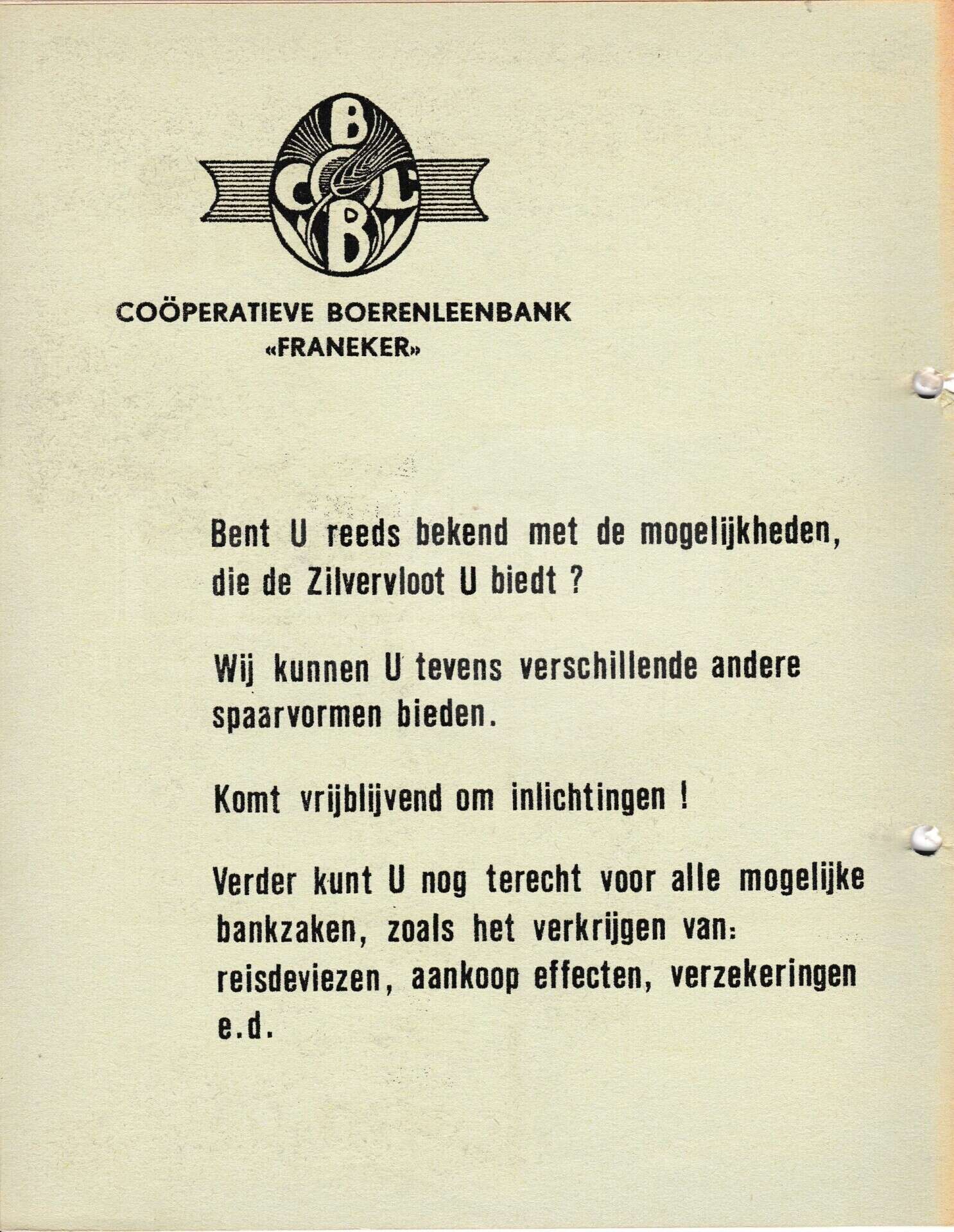 | Beschrijving: | It Fleurige Flittergat: 2de jaargang nr. 2: Reklame: Coöperatieve Boerenleenbank Franeker |