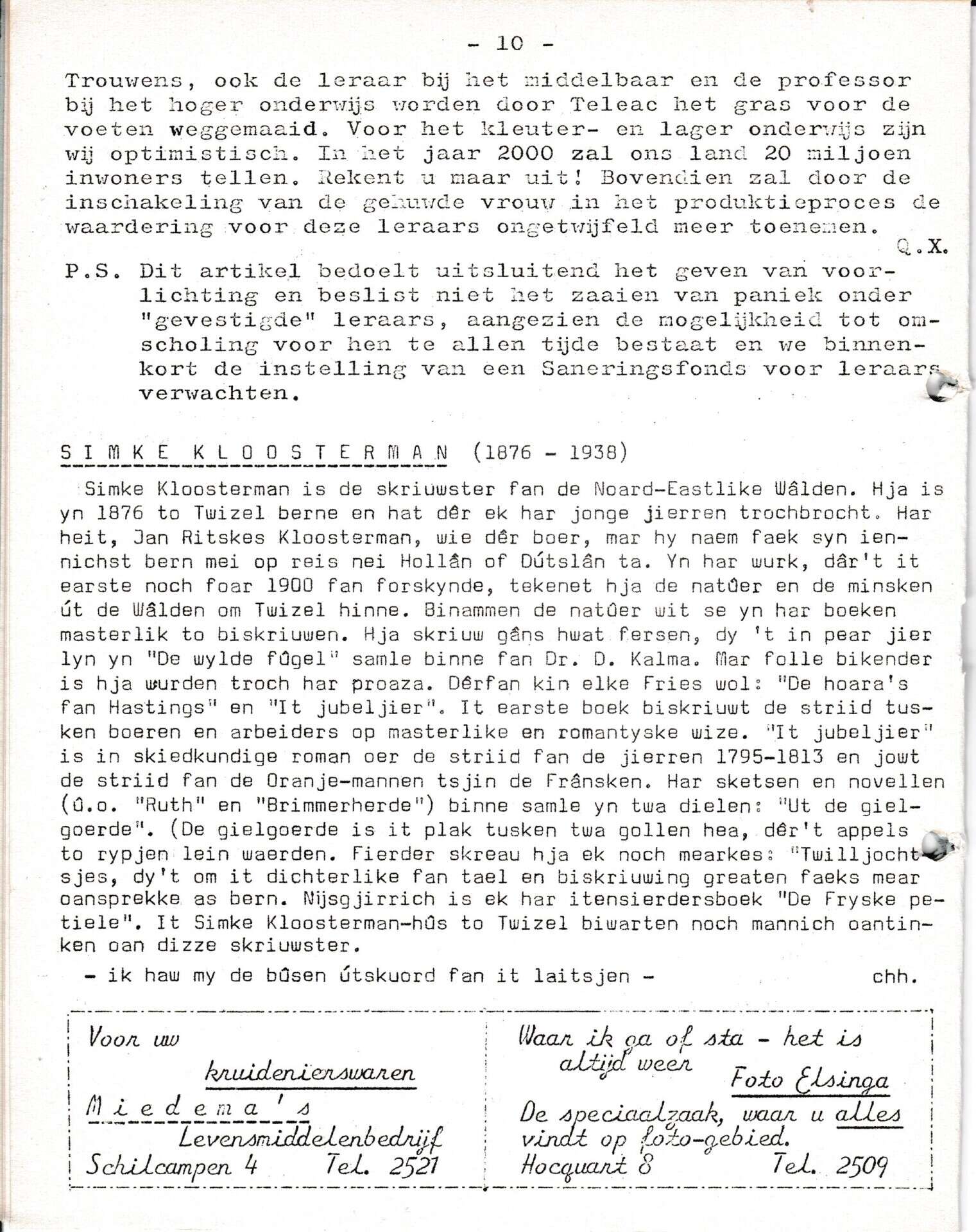 | Beschrijving: | It Fleurige Flittergat: 2de jaargang nr. 3: vervolg Beroepskeuze, Simke Kloosterman,reklame: Miedema Kruidenier Schilcampen 4, Foto Elsinga Hocquart 8. |